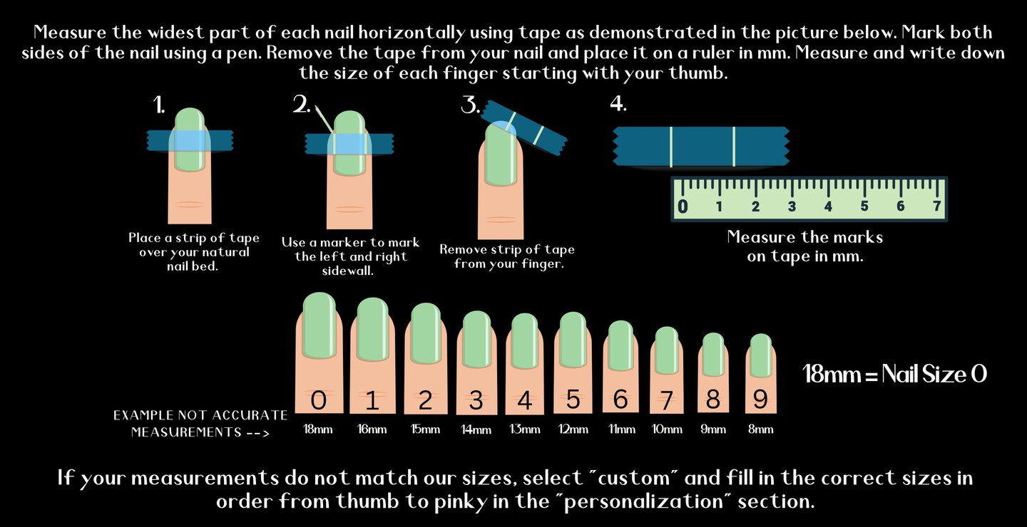 💡 Pro Tip: If you're in between sizes, always size up then file nails to adjust.